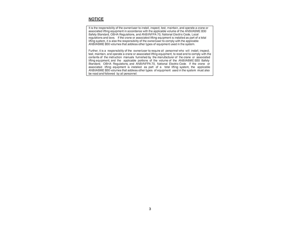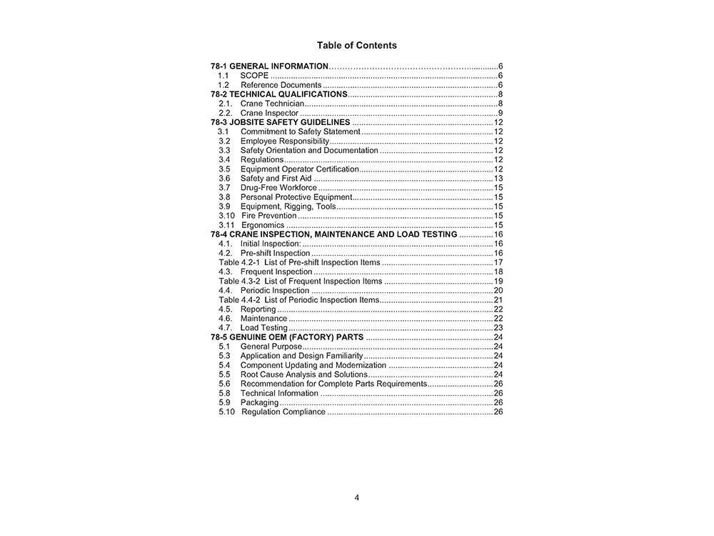 This Specification also contains information that should be helpful to the users of cranes, as well as to engineers in the facility and maintenance professionals. While much of this information must be of a general nature, the items listed may be checked with individual manufacturers. Additional comparisons may be made leading to optimum selection of a service provider based on input from the Original Equipment Manufacturer (OEM).
